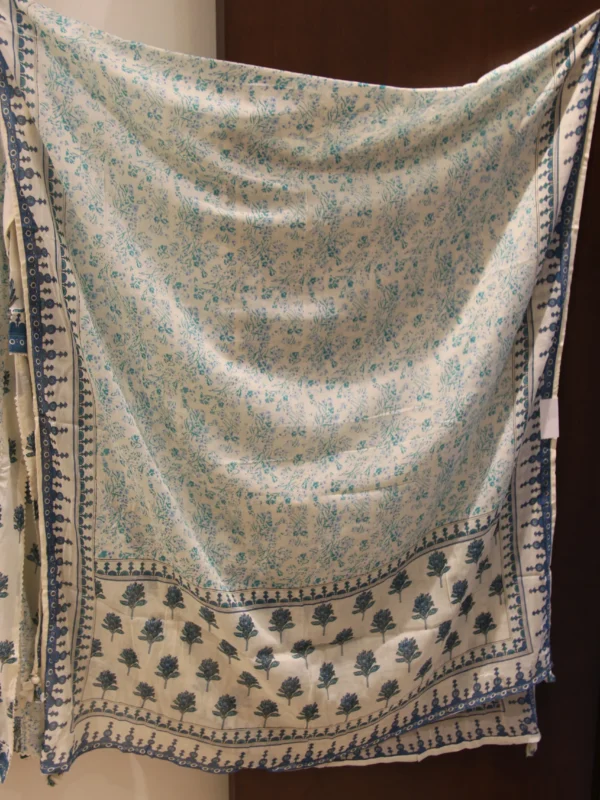 Breathe in the calmness of handcrafted charm with Azure Bloom, a blue-colored printed cotton suit that captures the spirit of effortless elegance. This ensemble beautifully blends comfort and artistry, featuring botanical print motifs that exude serene sophistication.