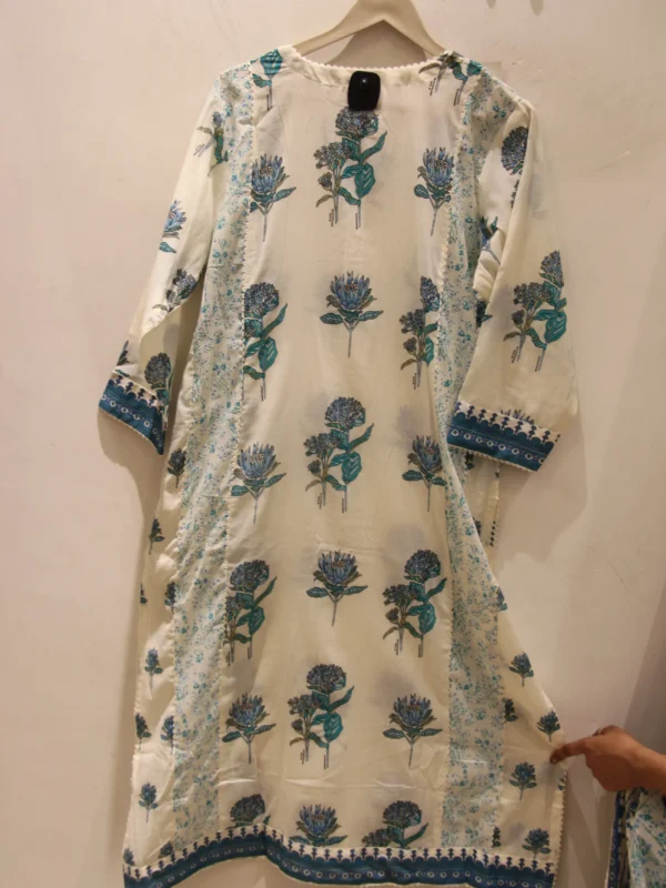 Crafted from pure breathable cotton, this suit ensures all-day comfort while maintaining a refined silhouette. The soft texture and light weight of the fabric make it perfect for warm days, festive brunches, and elegant everyday wear. The matching printed dupatta and checkered pants complete the look, offering harmony in design and grace in detail.
