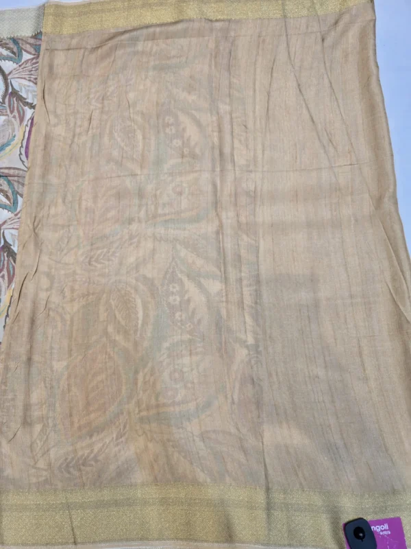 Step into the world of timeless grace with this Beige Moonga Tussar Saree, a harmonious blend of traditional artistry and refined craftsmanship.