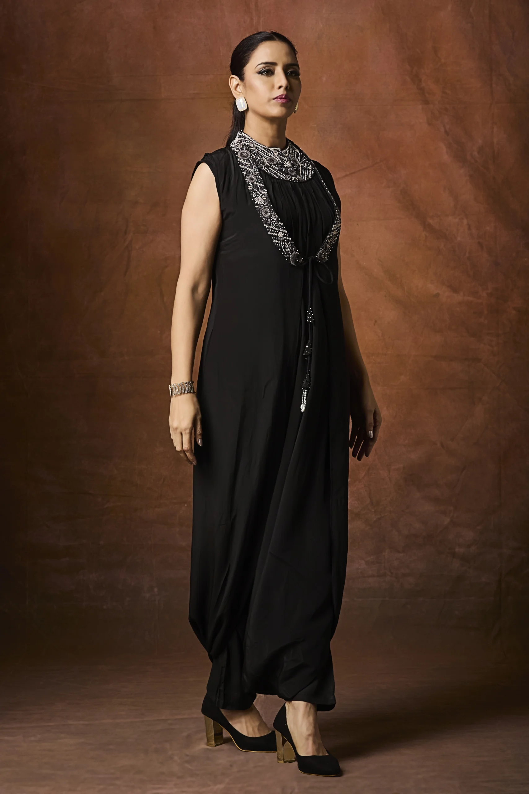 Midnight Noir Embellished Indo-Western Drape