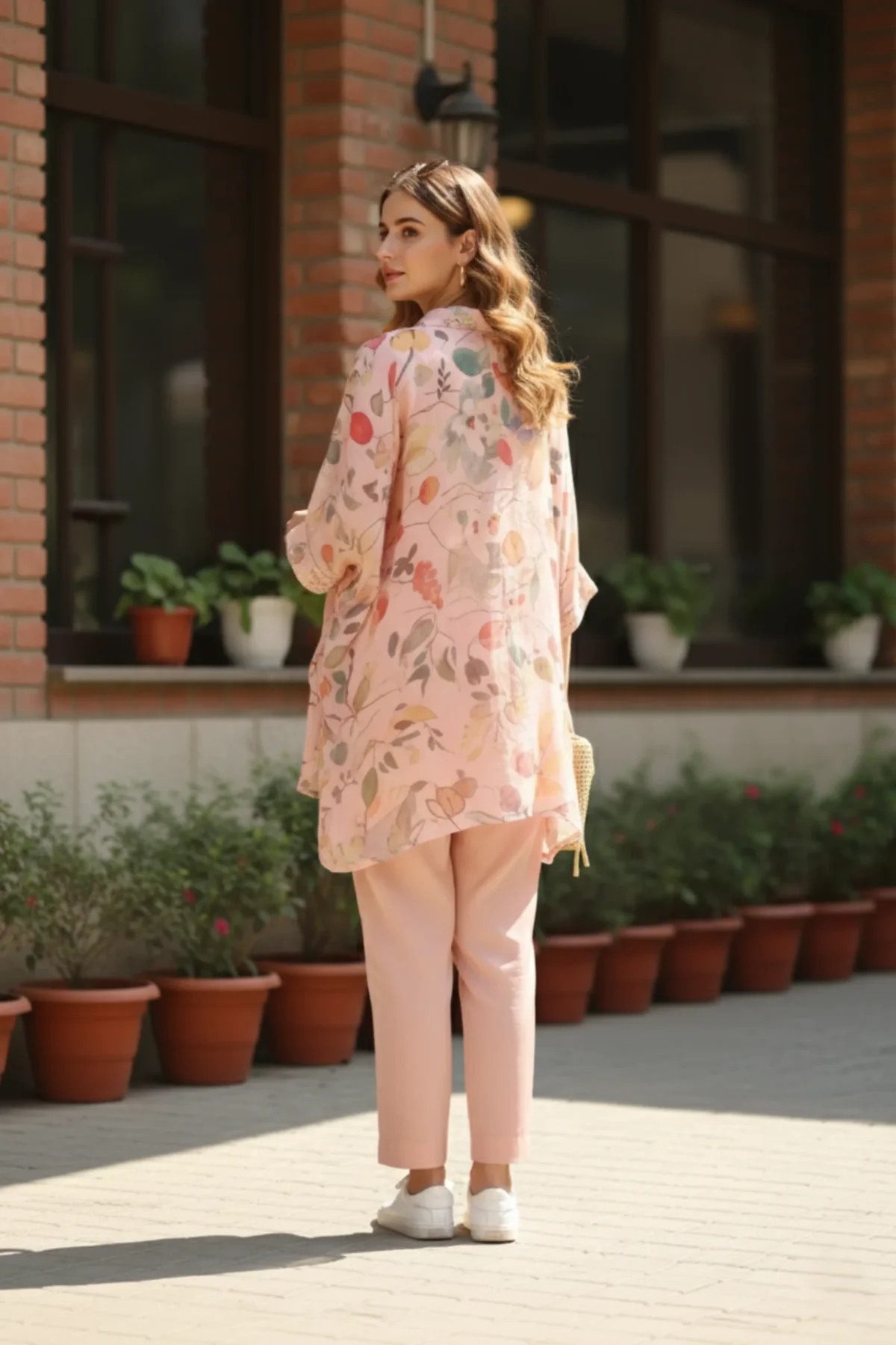 Blush Bloom – Pink Chinnon Printed Kaftan Co-Ord Set