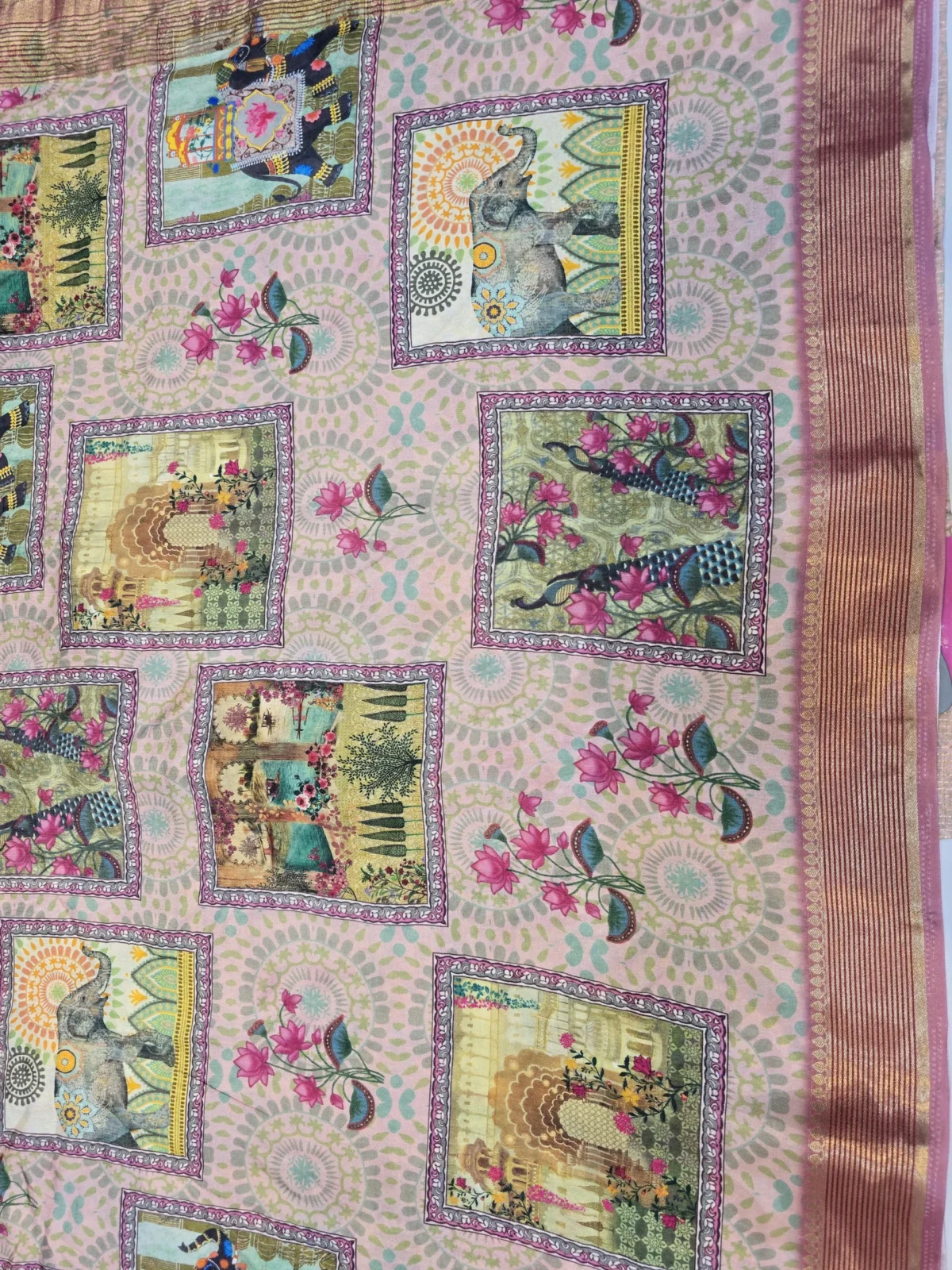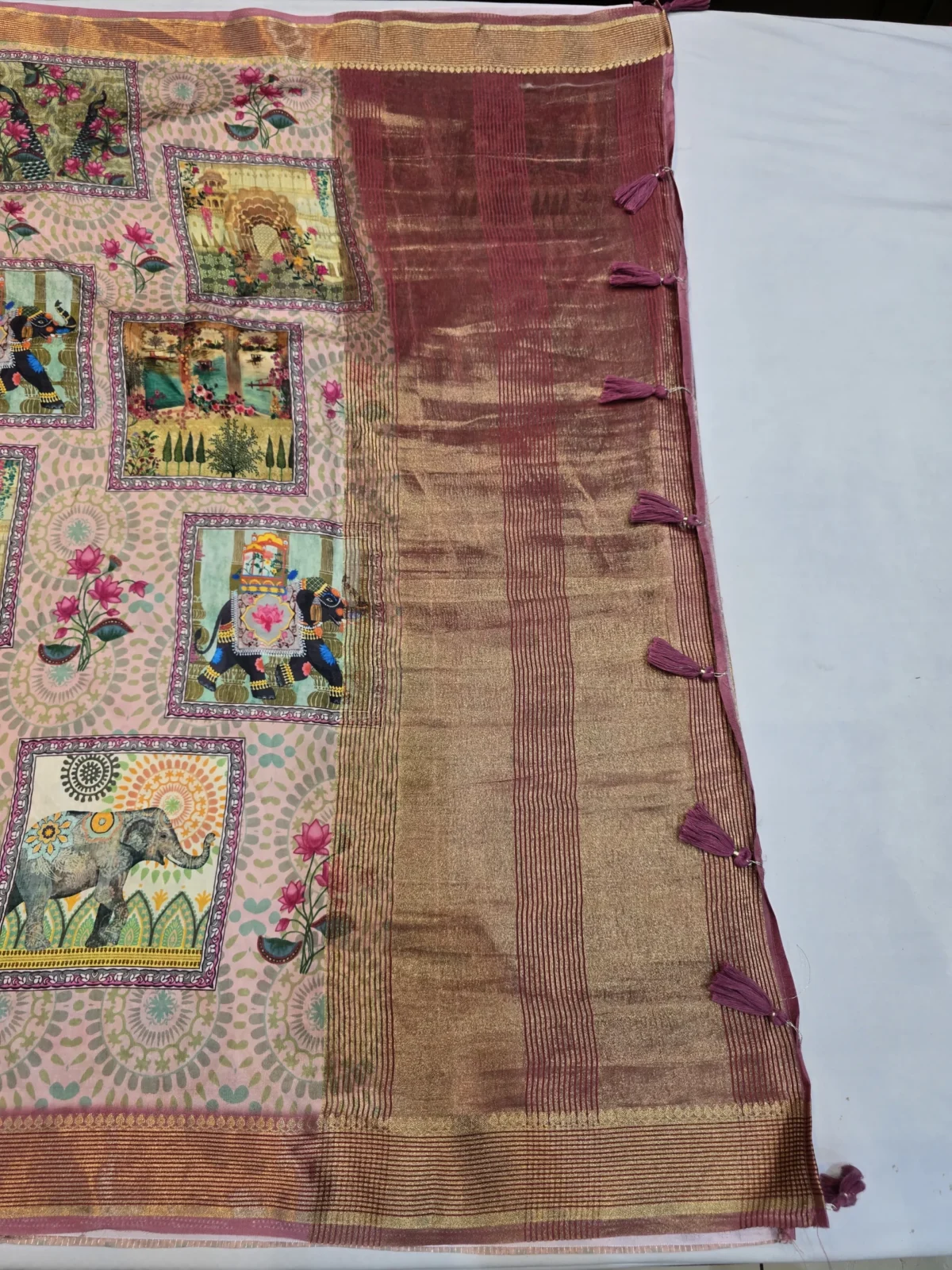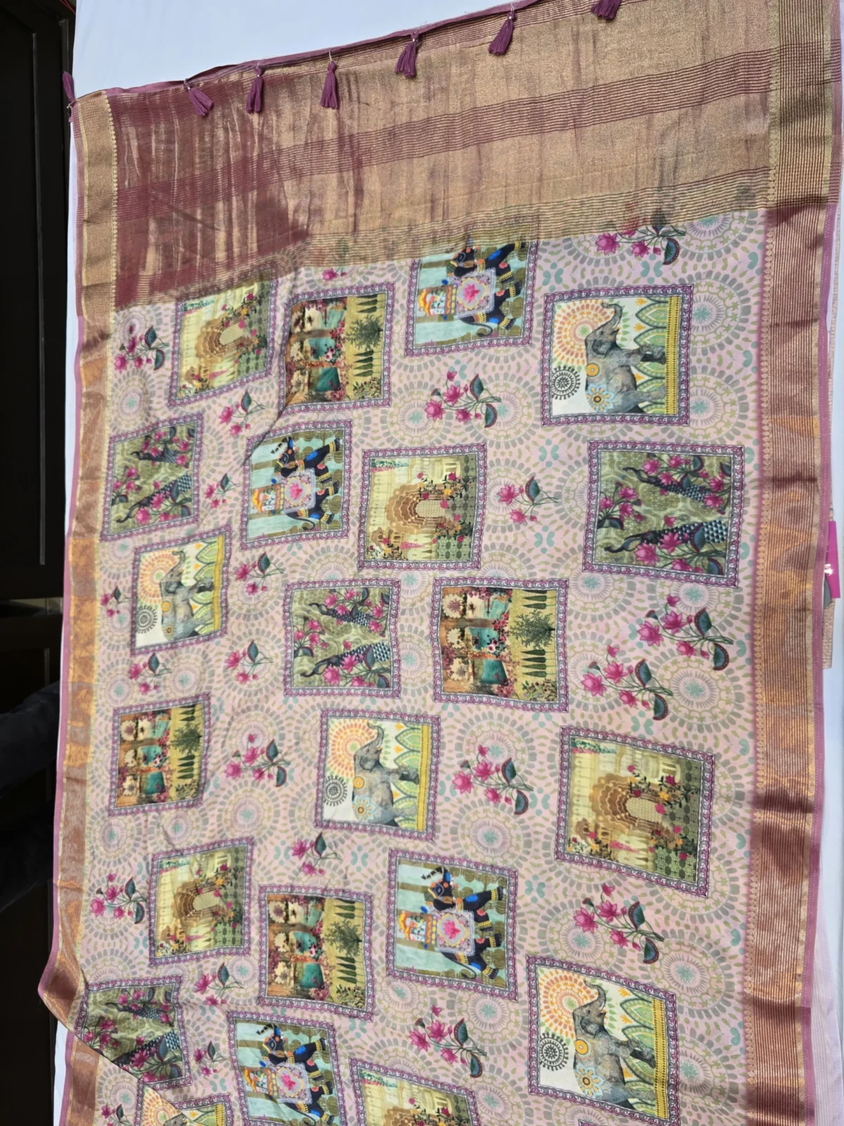 Blush Moonga Tussar Saree with Woven Zari Border & Heritage Pichwai Print