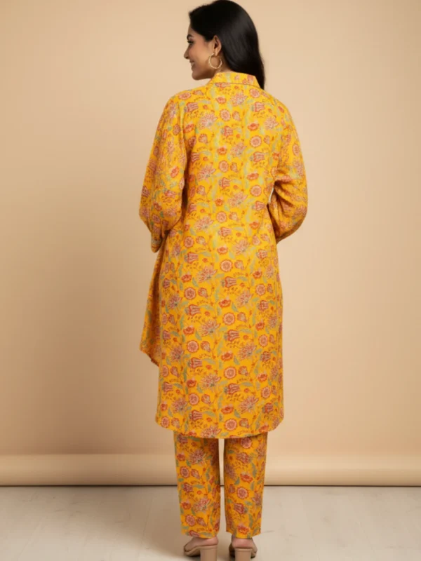 Be the first to review “Bright Yellow Muslin Printed Co-Ord Set with Chic Overlap Hem Kurta”