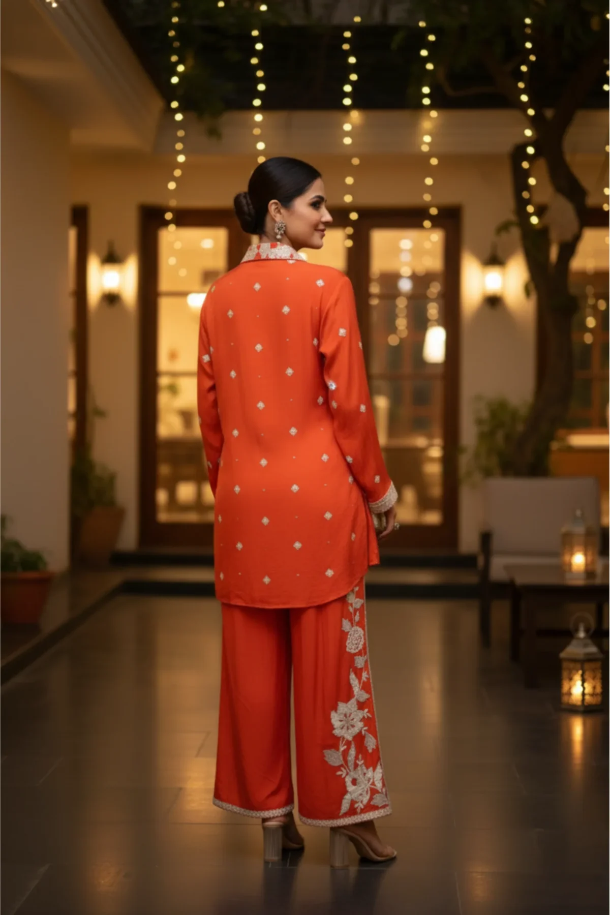 Amber Bloom – Burnt Orange Chinnon Embroidered Co-Ord Set