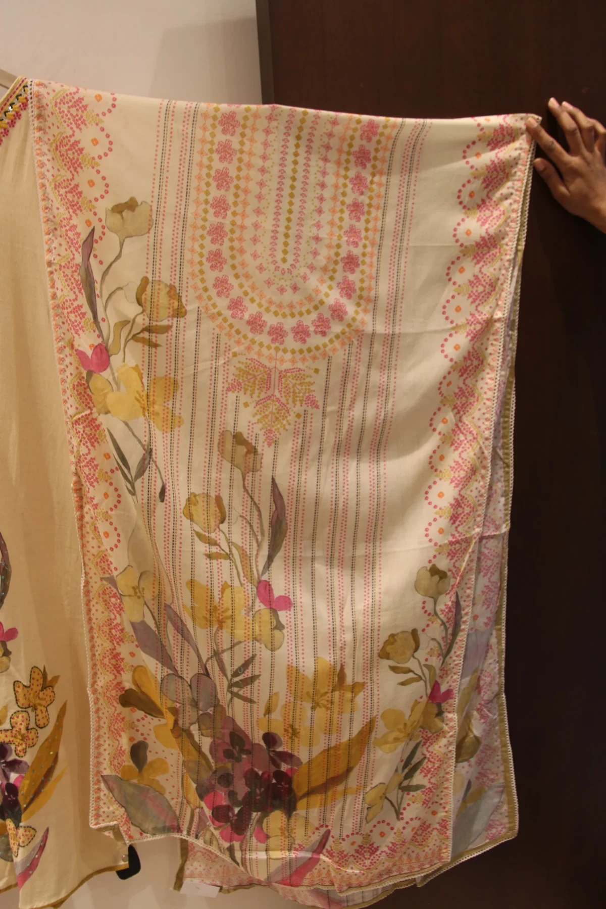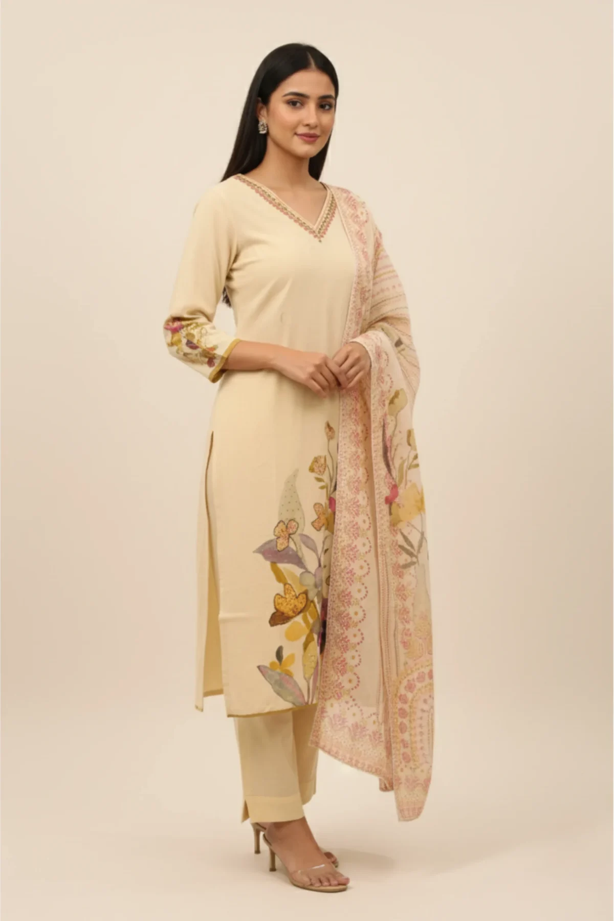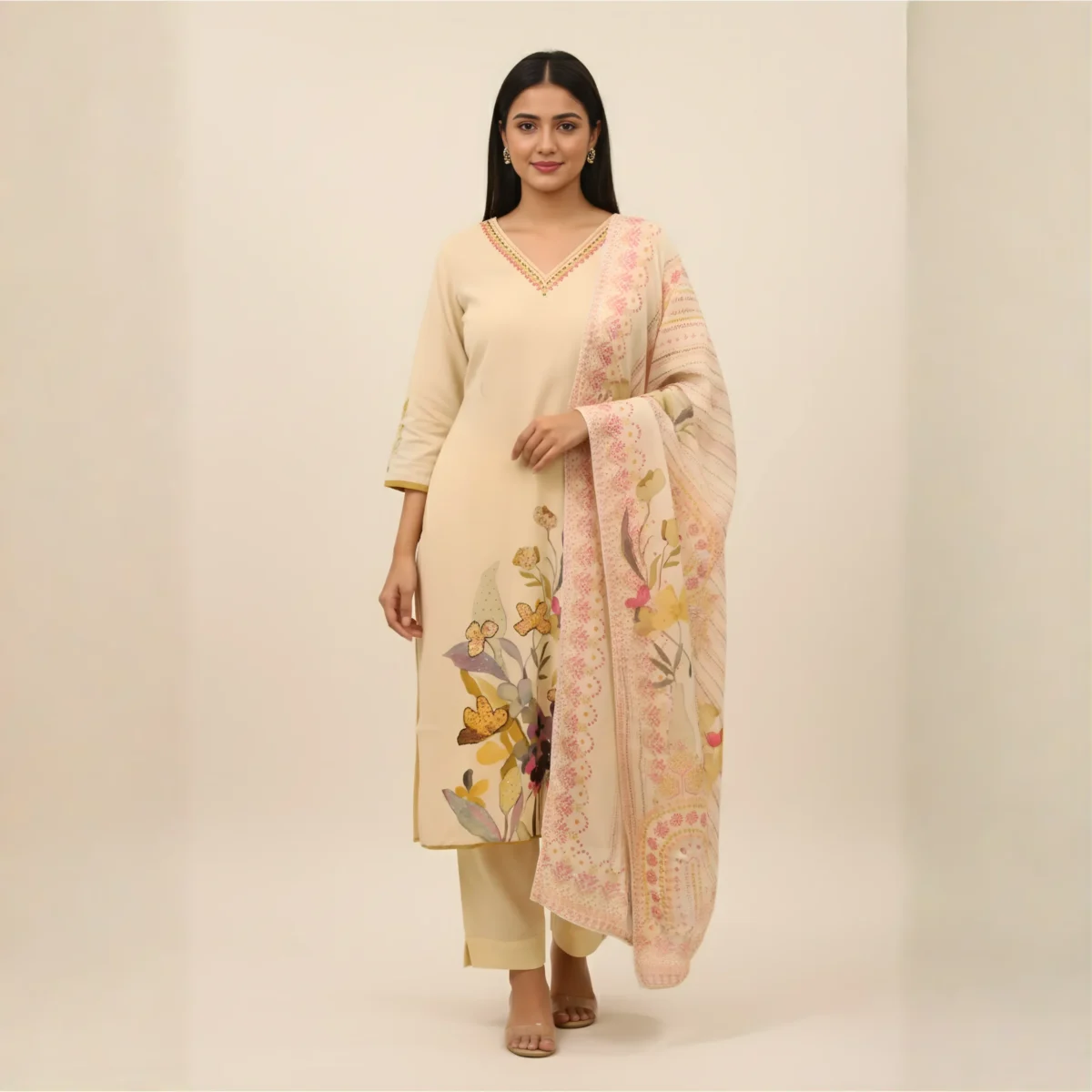 Butterfly Meadow – Cream Printed & Highlighted Khadi Suit
