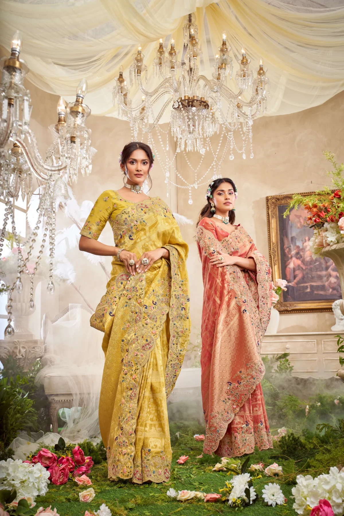 Coral Royale Hand-Embroidered Luxury Designer Saree