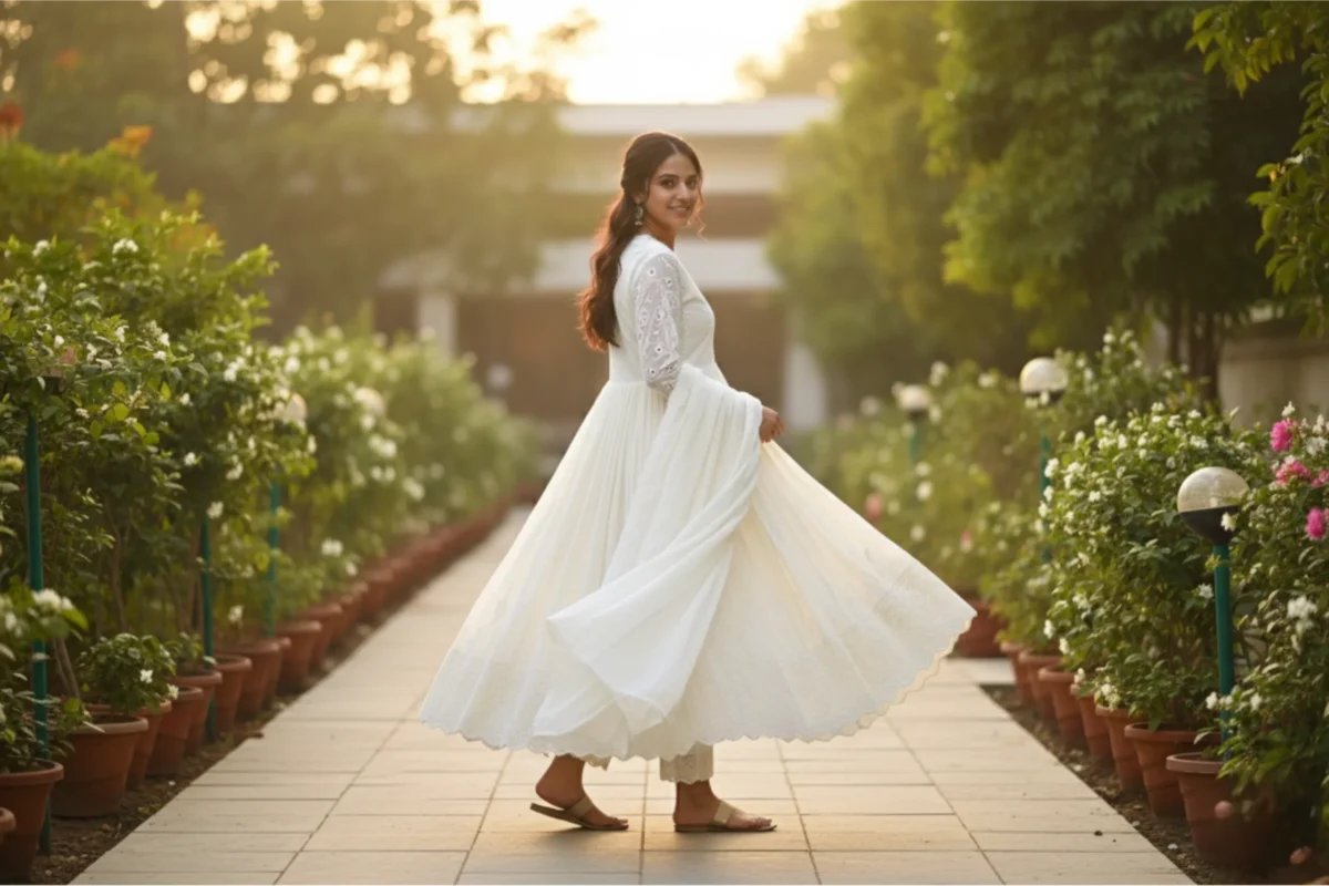 Ethereal Bloom – Cream Cotton Suit with Delicate Embroidery