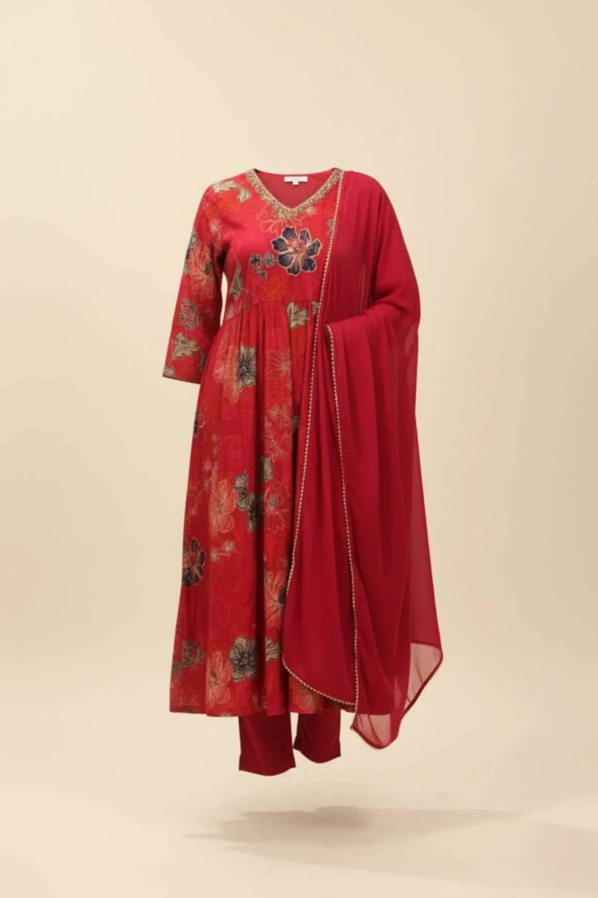 Floral Muse – Bright Pink Model Silk Printed Suit