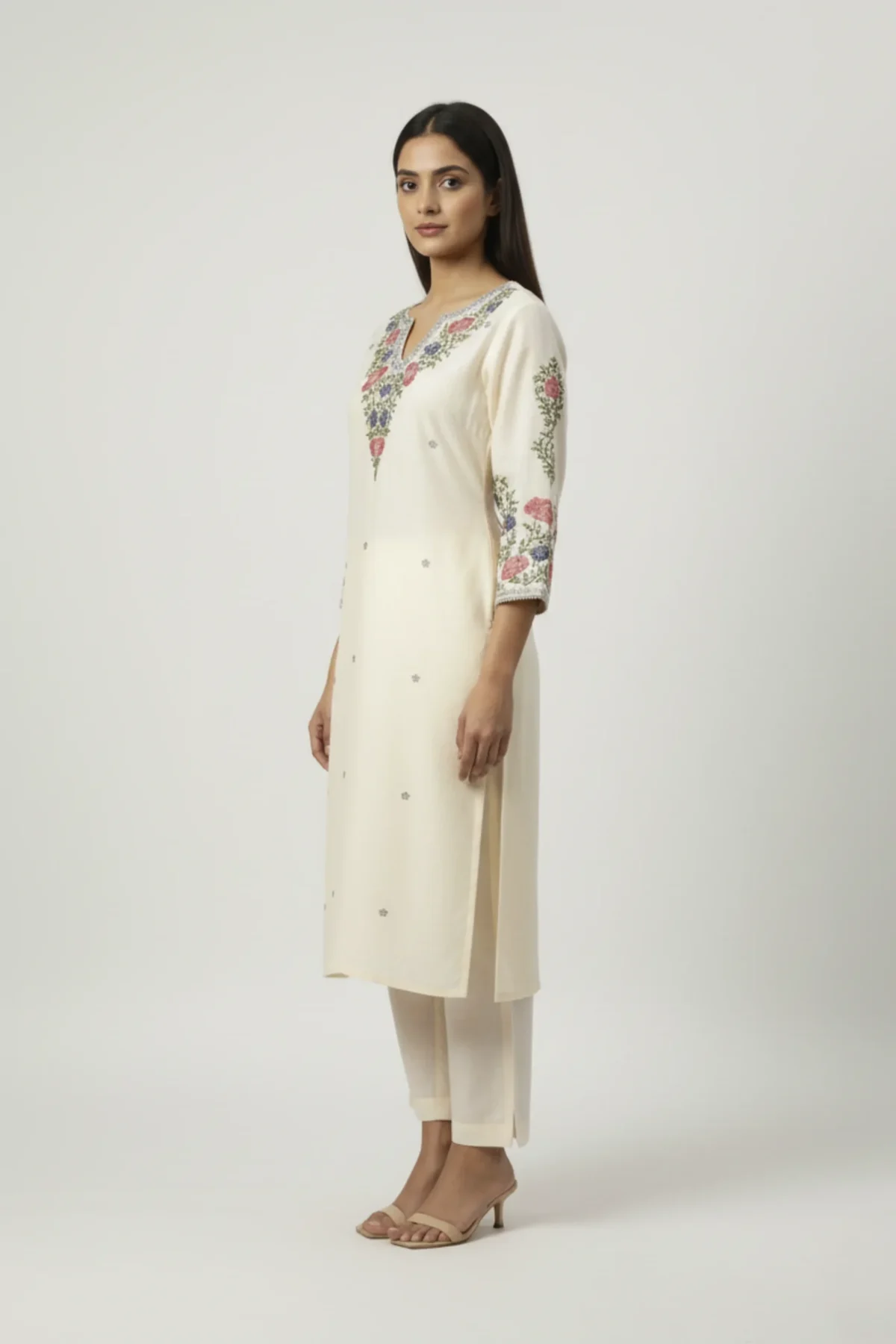 Exude timeless elegance with this Off-White Linen Co-Ord Set featuring intricate floral embroidery — a blend of luxury, comfort, and classic grace.