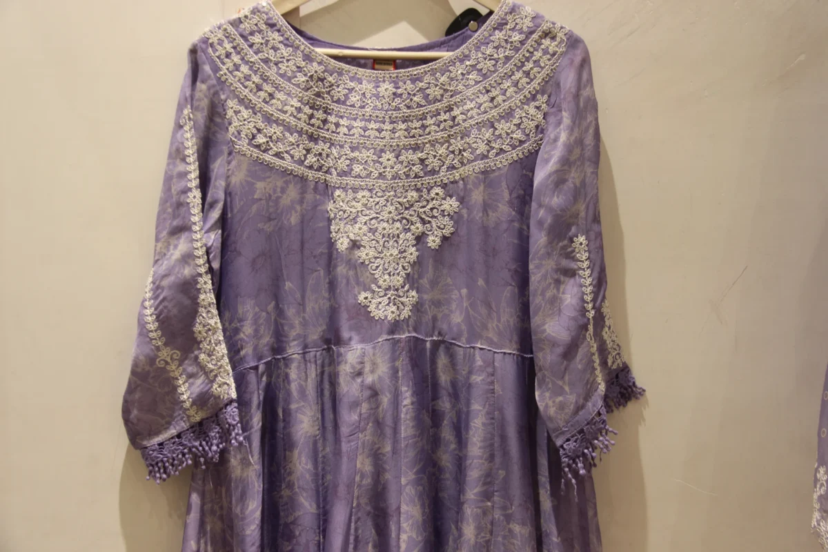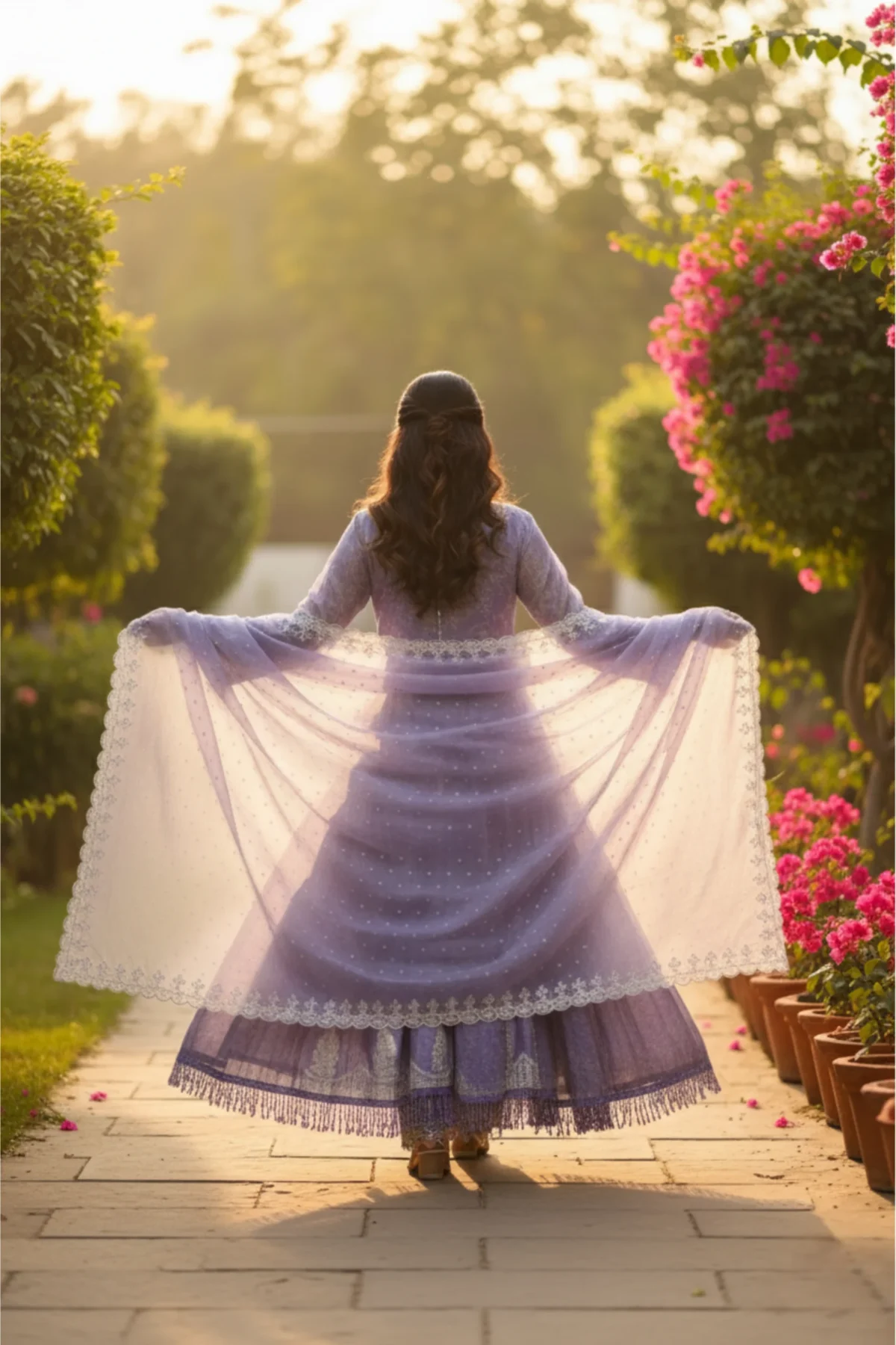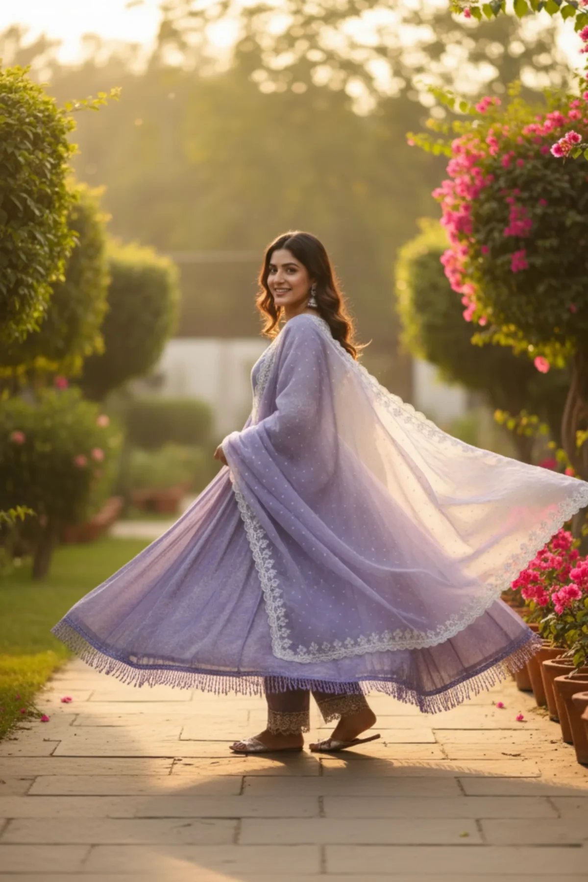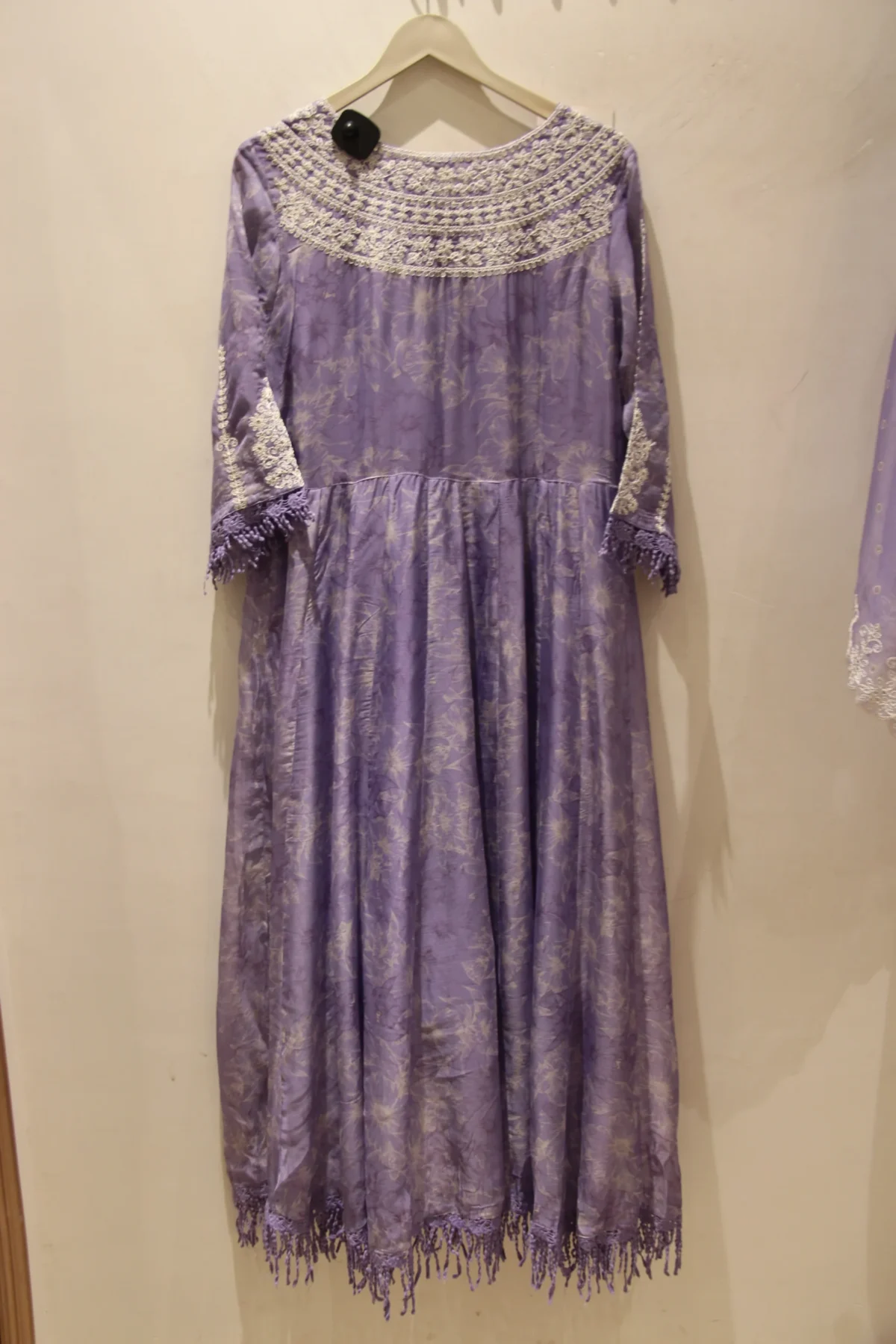 Lavender Luxe – Printed & Embroidered Georgette Anarkali Suit
