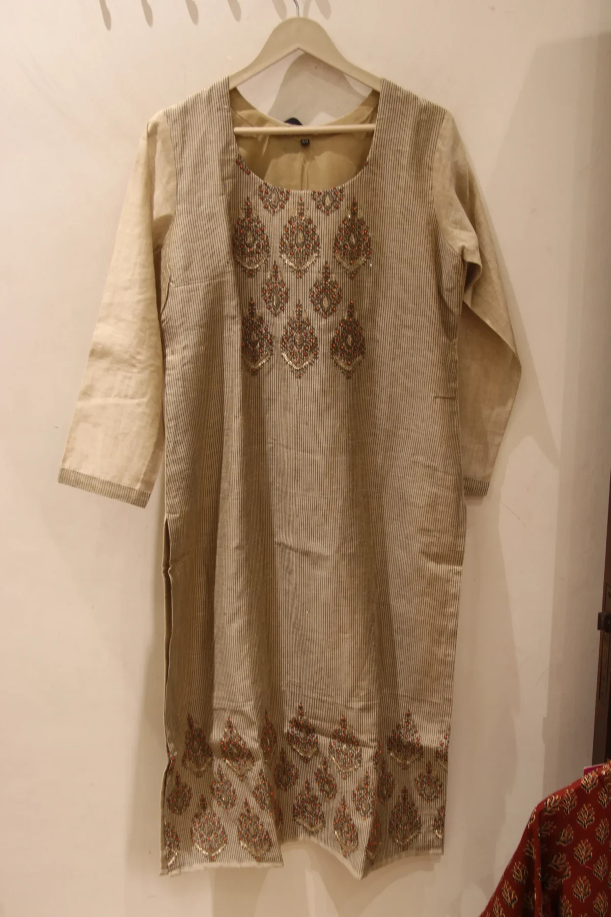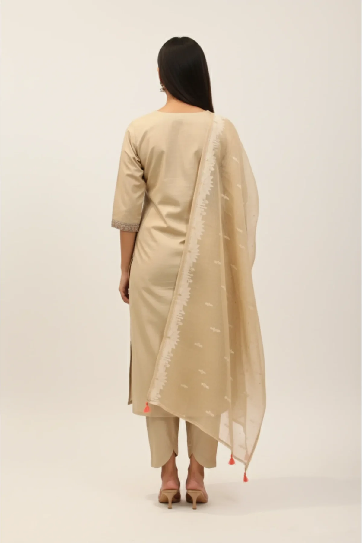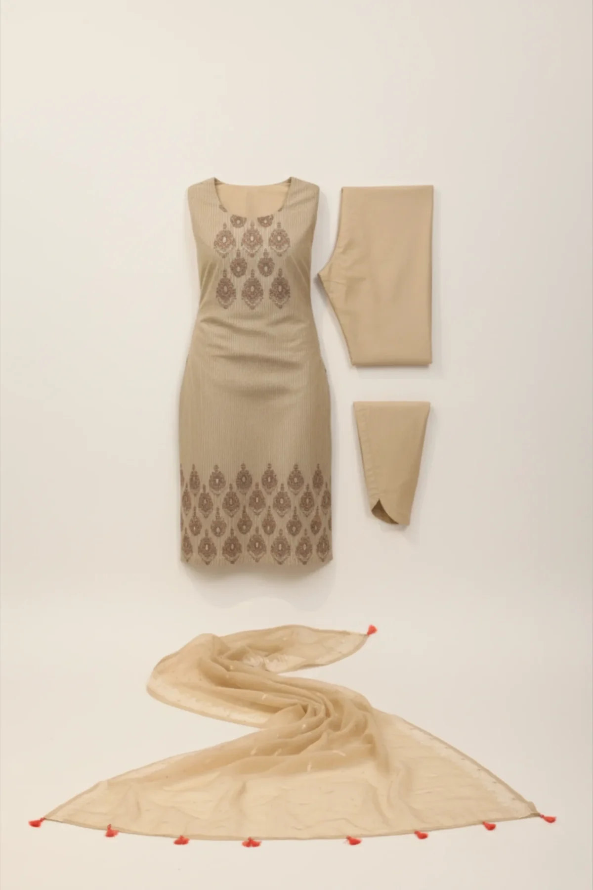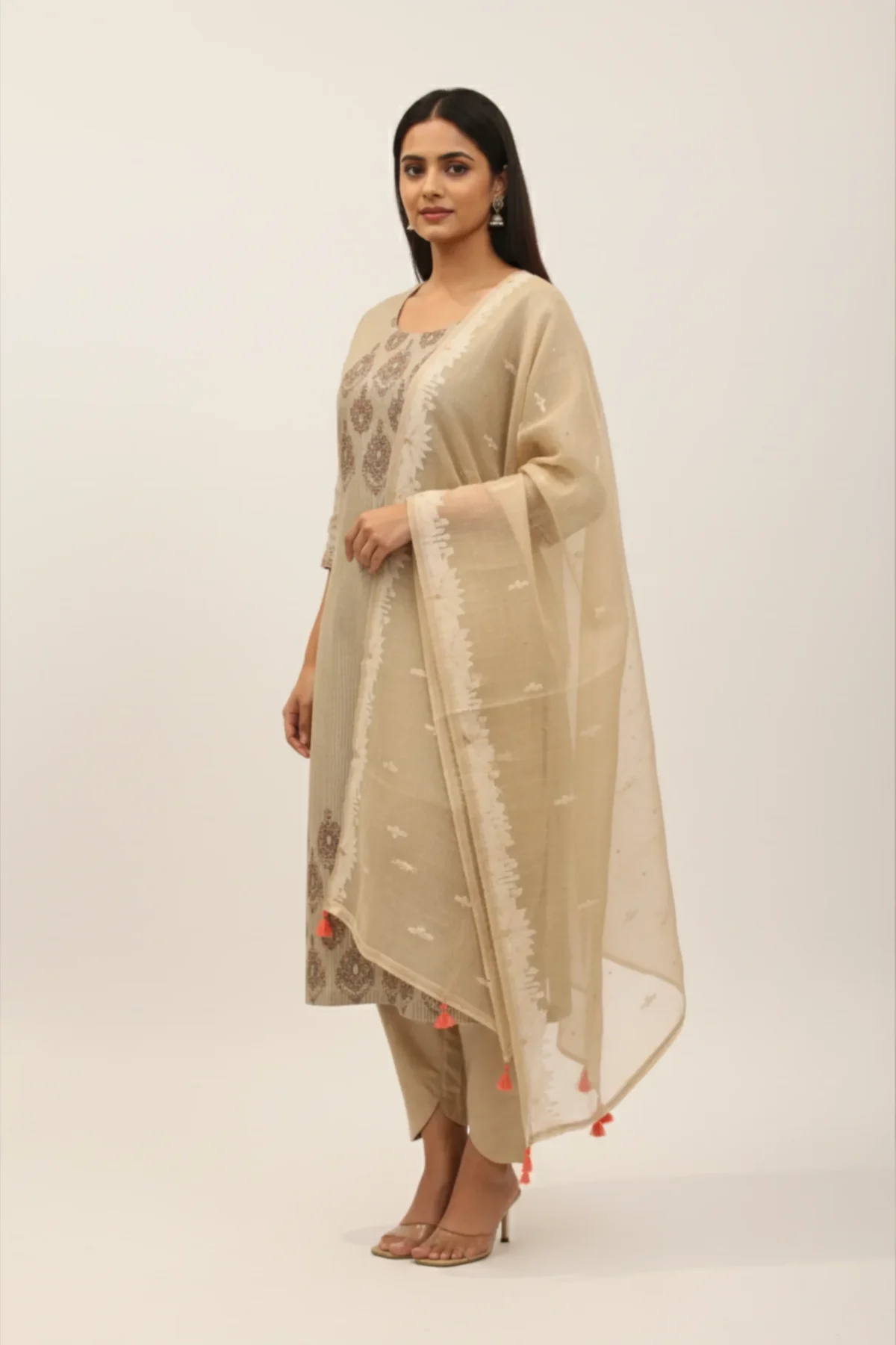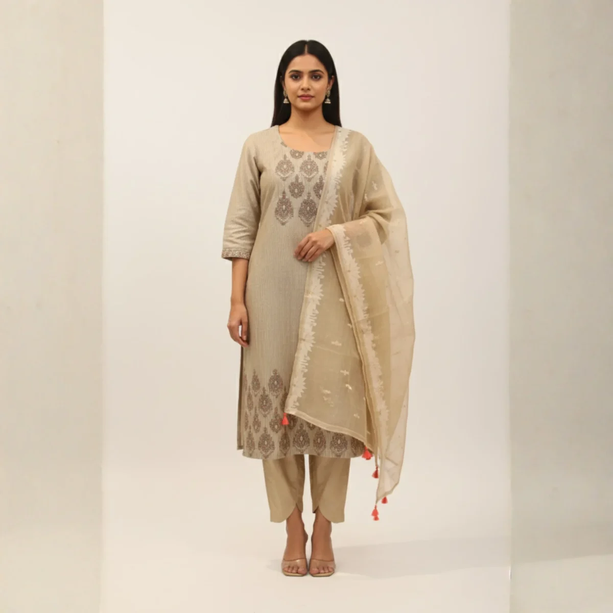 Moonlit Grace – Dusty Grey Printed & Highlighted Chanderi Suit