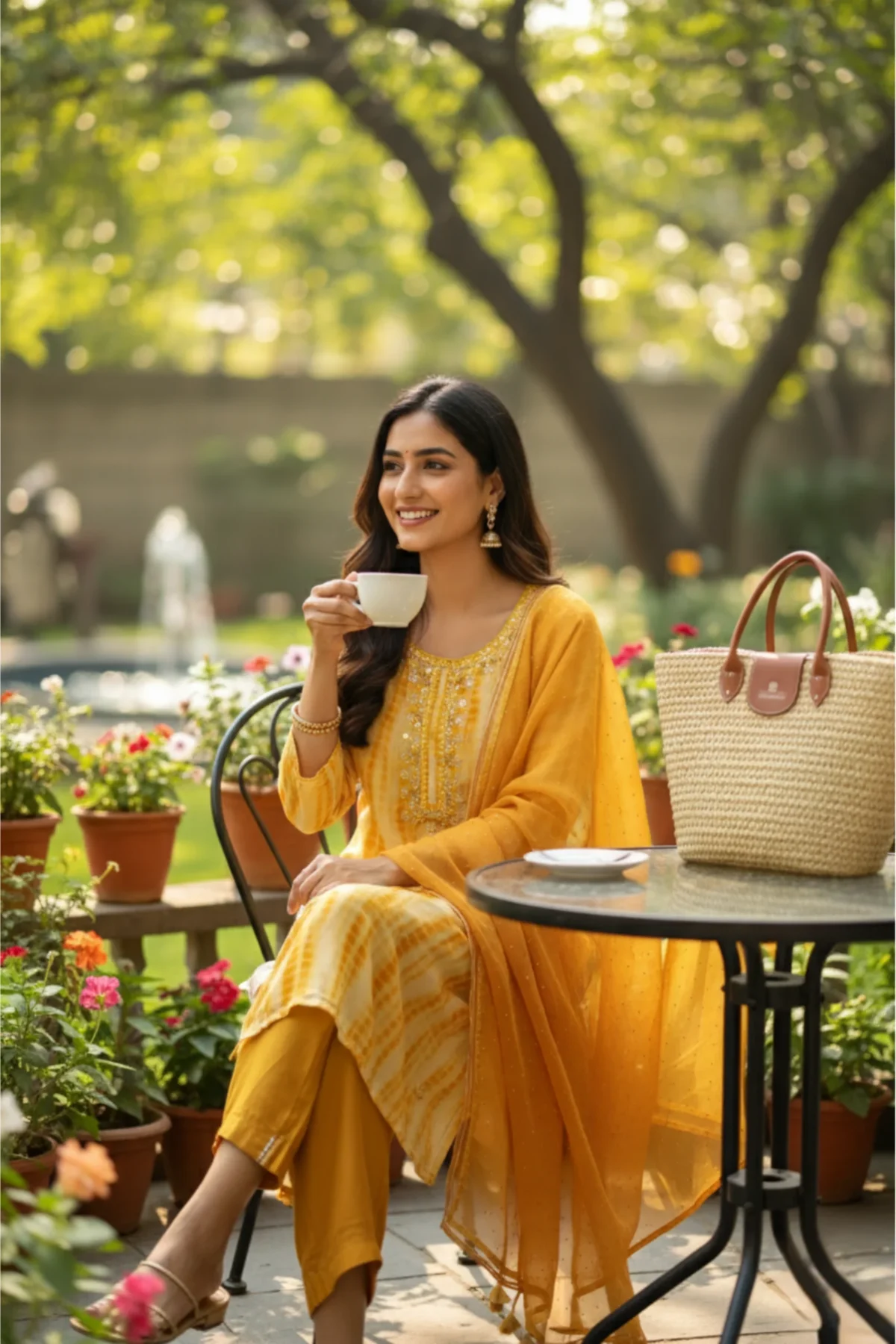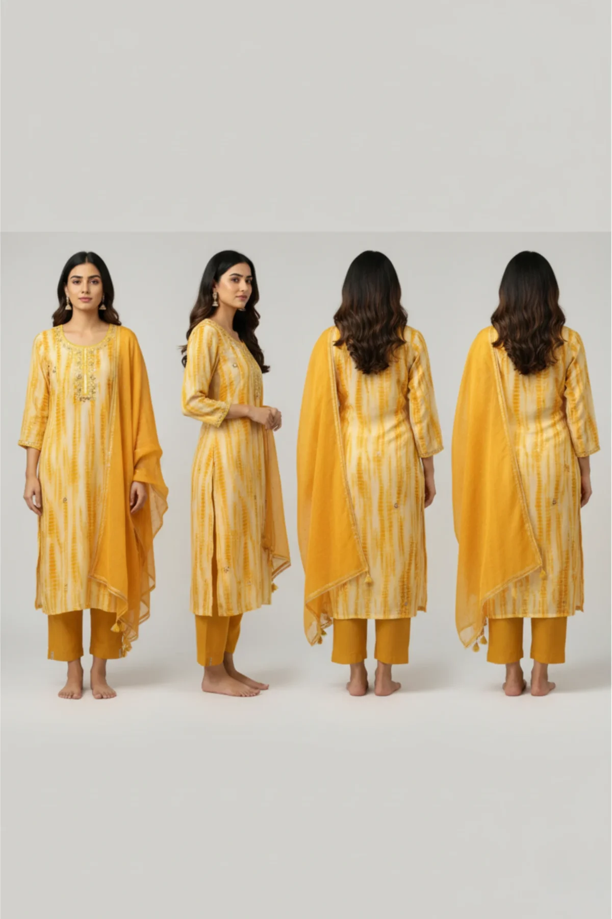 Mustard Mirage – Tie & Dye Muslin Mirror Work Suit Set (3 Pc)