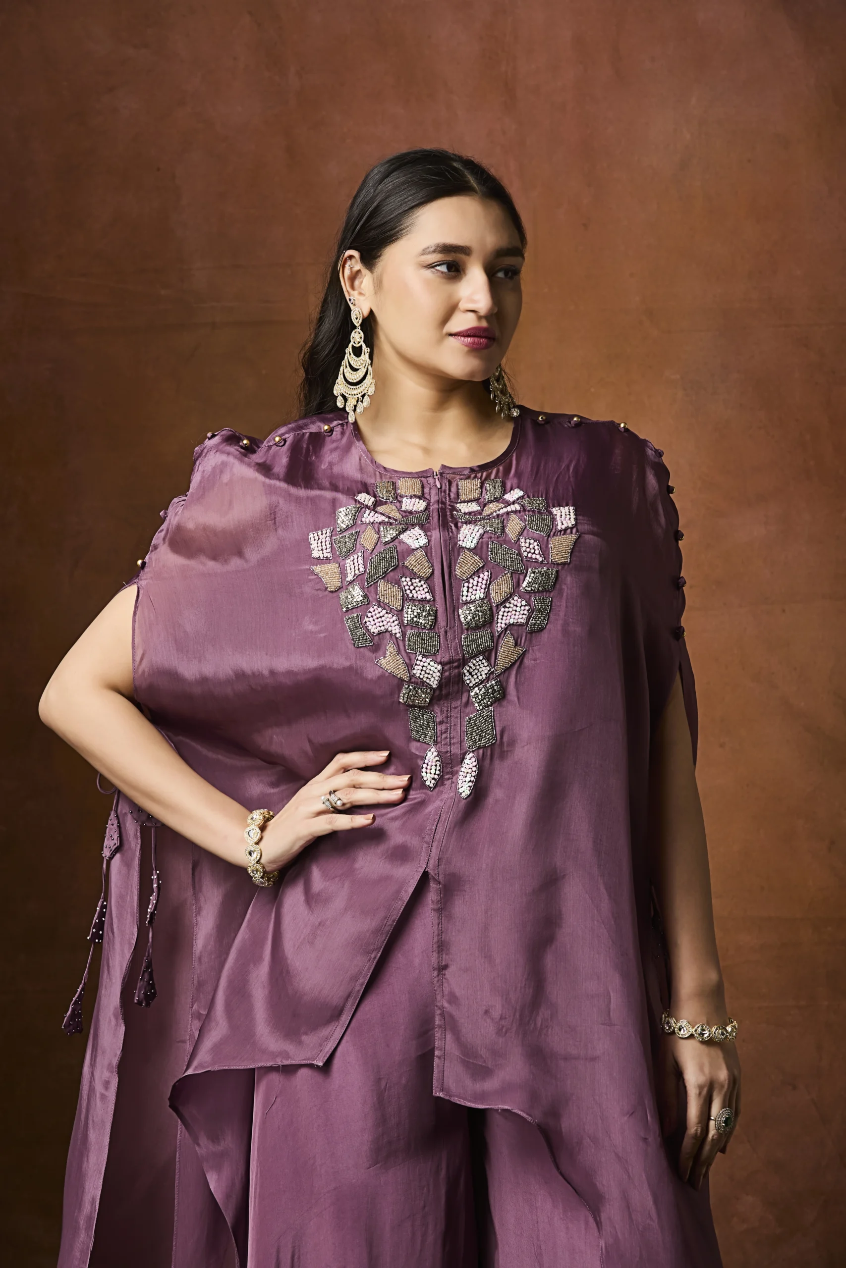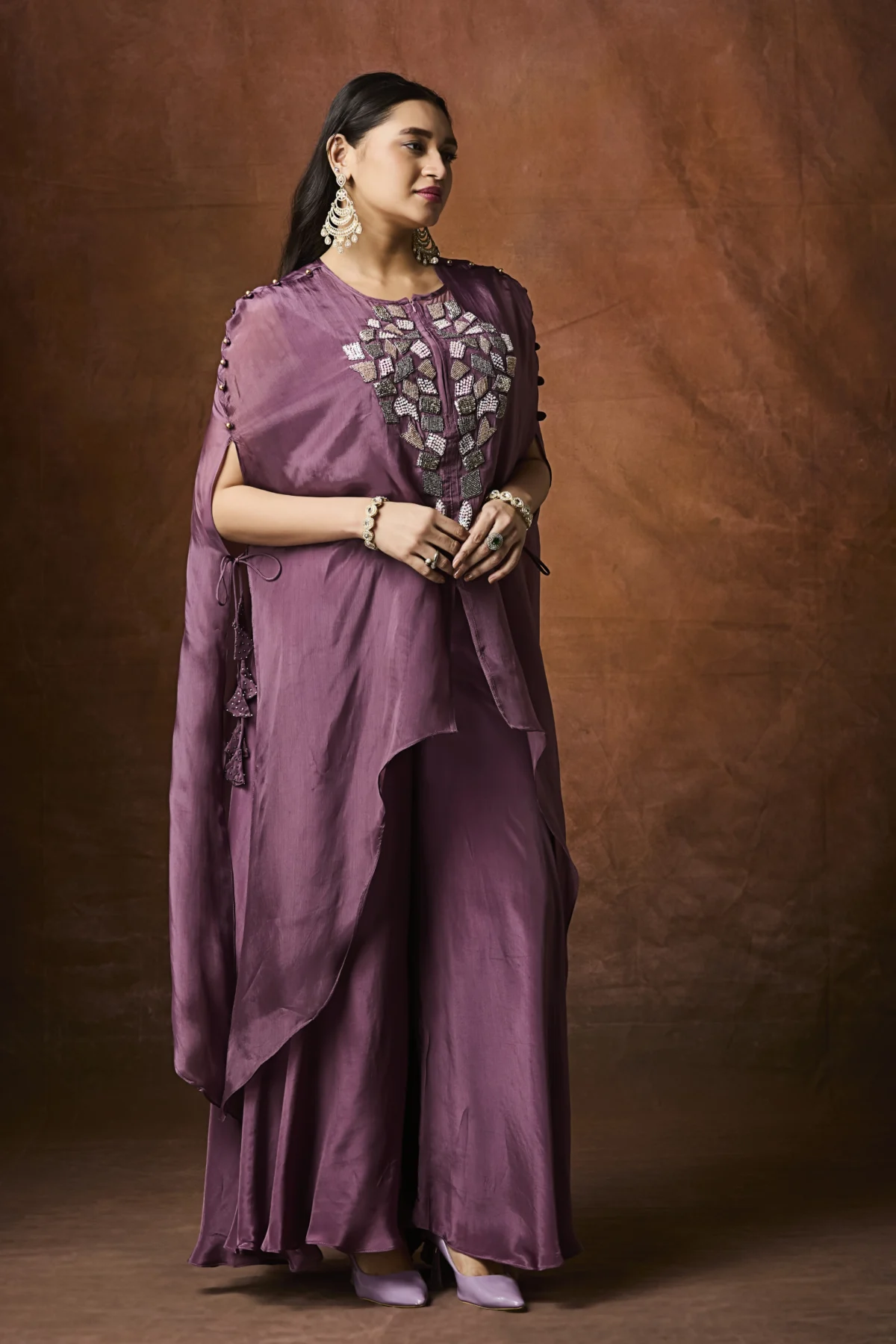 Plum Embroidered Cape-Style Indo-Western Ensemble