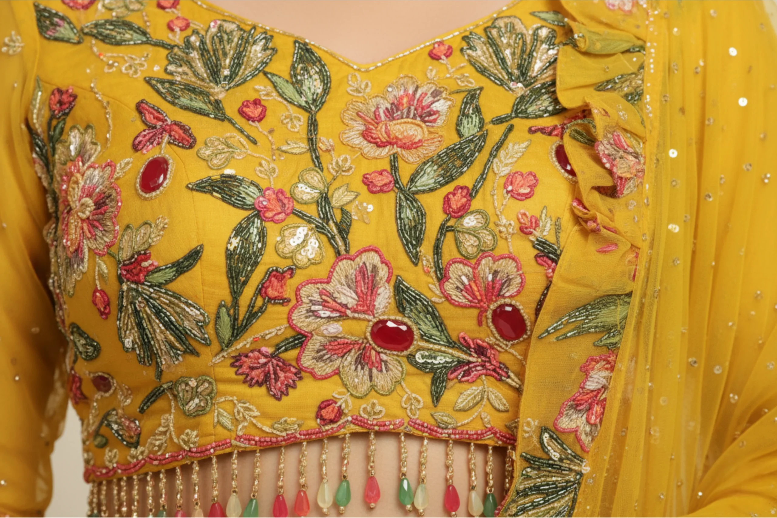 Celestial Royal Blue – Beaded Crystal Net Designer Lehenga