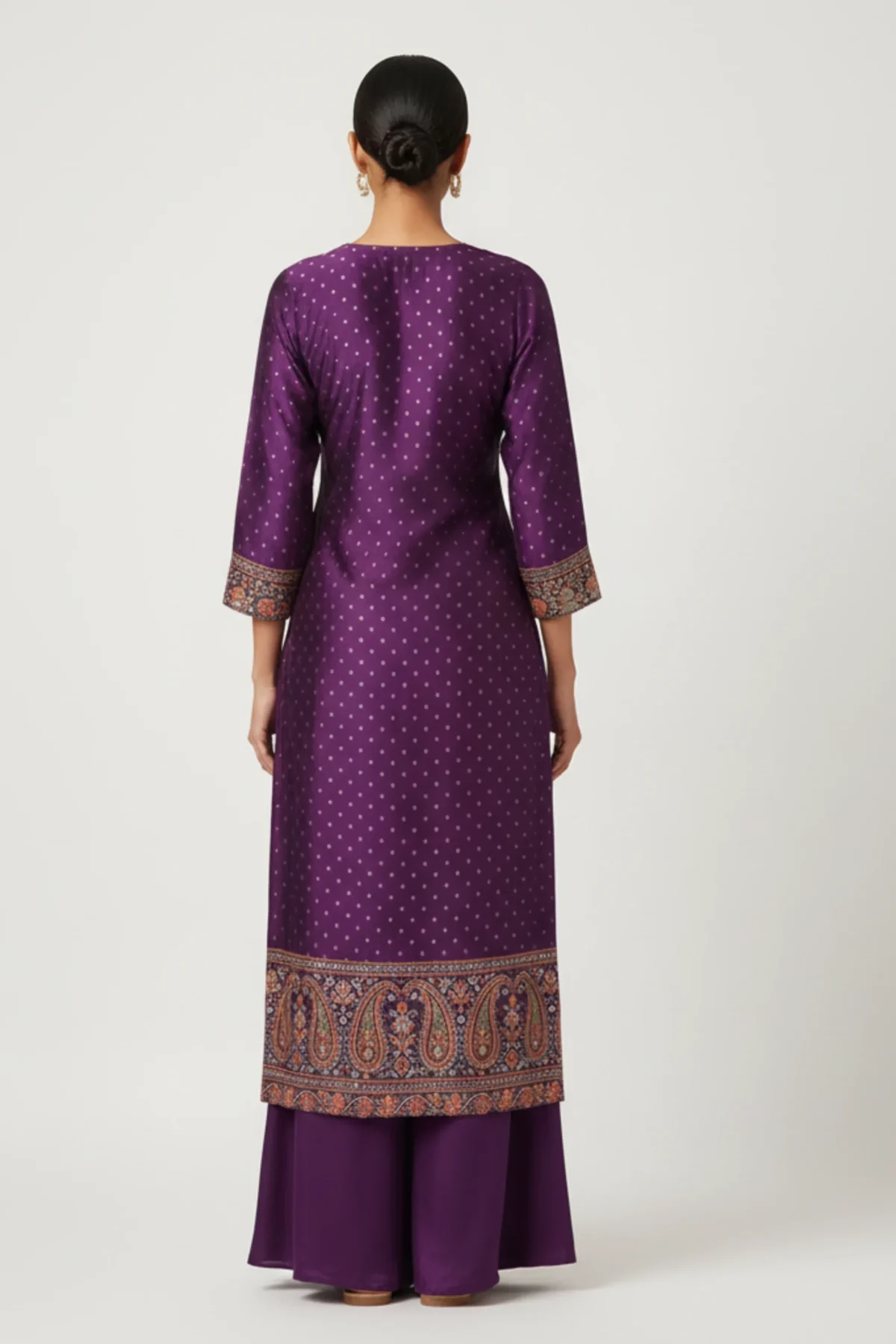 Royal Orchid – Purple Muslin Suit with Intricate Print & Embellished Neckline