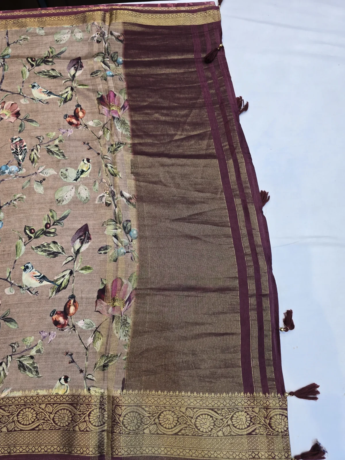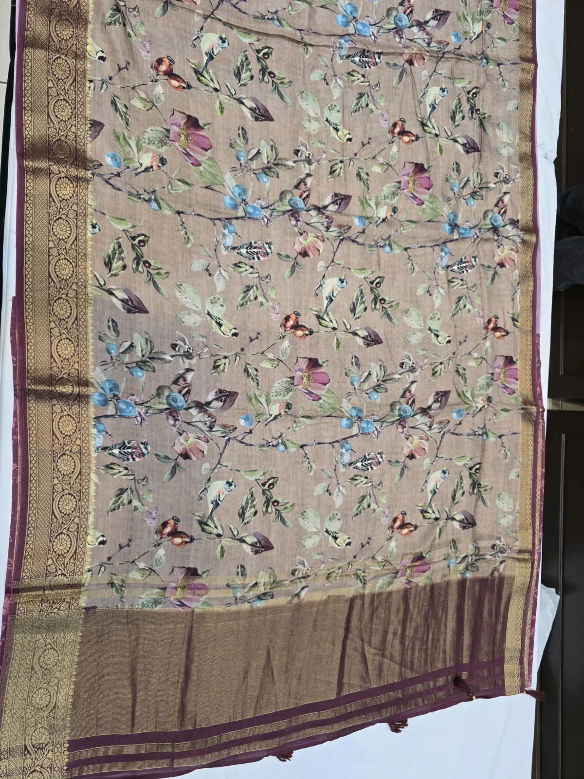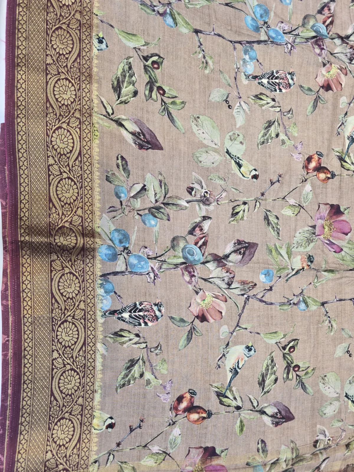 Vintage Moonga Tussar Saree with Pichwai-Inspired Prints & Woven Zari Border